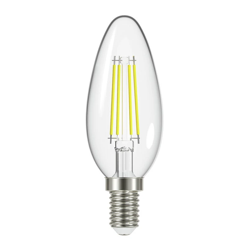 Tämän Oiva-sarjan kirkaskupuisen LED-polttimon värisävy on miellyttävä puhtaan valkoinen (3000 K). Läpinäkyvä kynttilälamppu jättää kauniisti esille sisällä olevat LED-valonauhat ja tarjoaa ympärilleen kirkasta valoa.