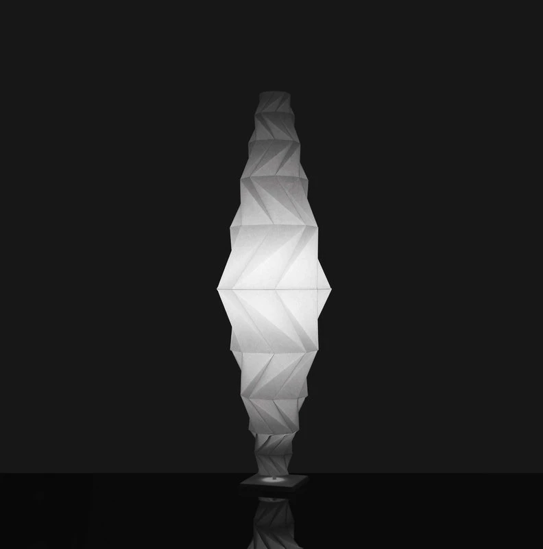 Artemiden Minomushi-lattiavalaisin on osa IN-EI Issey Miyake -valaisinkokoelmaa, joka yhdistää italialaisbrändin vankan valaisinosaamisen japanilaissuunnittelija Issey Miyaken tunnusomaiseen, innovatiiviseen laskostukseen. Veistoksellisesti taitellut valaisimet, jotka leikittelevät valoilla ja varjoilla, syntyivät Junichiro Tanizakin esseen Varjojen ylistys (alkup. In’ei Reisan) innoittamana.
