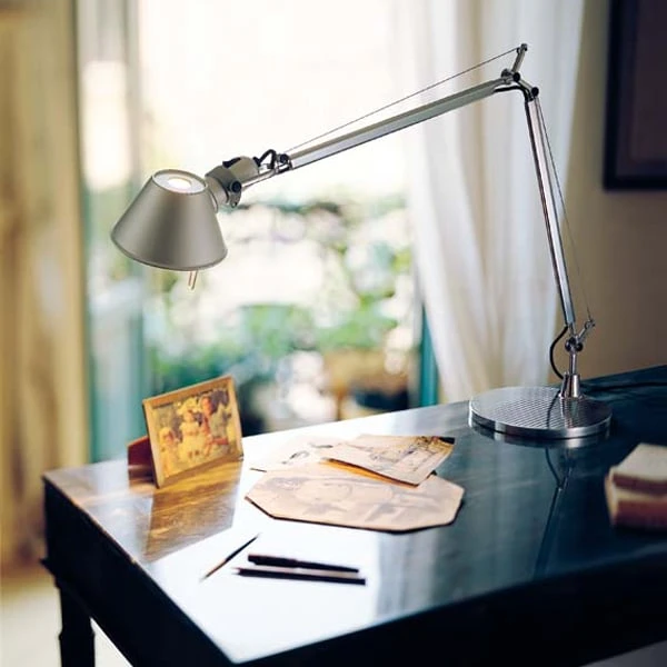Artemiden Tolomeo Mini -pöytävalaisin on italialaisen valaisinmuotoilun maineikas klassikko. Tolomeo-valaisimen kartionmuotoinen varjostin on alumiinia, ja tunnusomaisen vaijerirakenteen ansiosta valon suuntaa on helppo muunnella tarpeen mukaan.