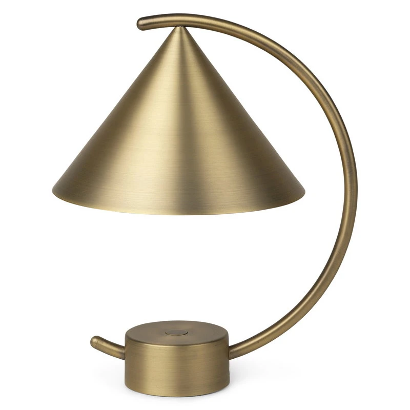 ferm LIVINGin Meridian-pöytävalaisin on muotoilustudio Regular Companyn käsialaa. Valaisimen kiehtovassa ja veistoksellisessa muotokielessä yhdistyy kolme geometrista elementtiä, jotka luovat modernin ja leikkisän olemuksen. Kompaktin kokonsa ja johdottoman luonteensa ansiosta ladattava pöytävalaisin on helposti liikuteltavissa ja ihanteellinen tunnelmanluoja esimerkiksi sivupöydälle tai avohyllylle. Himmennettävää valoa riittää yhdellä latauksella noin 12 tunniksi.