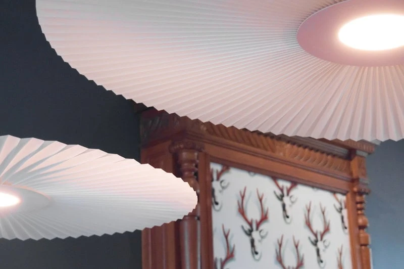 Harton Carmen-valaisimen omaperäinen muoto tuo mieleen tanssijan hameen, jonka helma nousee ilmaan tanssin pyörteissä. Hienostunut valaisin muodostuu läpinäkyvän pleksin alle asetetusta pyöreästä valolevystä ja sen ympärillä kiertävästä kankaasta taitellusta viuhkamaisesta kehästä. Kauniin harmoniset sävyt korostavat PaulinePlusLuis Studion suunnitteleman Carmenin herkkää olemusta, mutta muotonsa ja kokonsa vuoksi se on samaan aikaan näyttävä lisä esimerkiksi olohuoneen tai aulatilojen sisutukseen. Carmen-valaisimesta on saatavilla useita kokoja ja sävyjä, joita voit myös yhdistellä haluamaksesi kokonaisuudeksi.