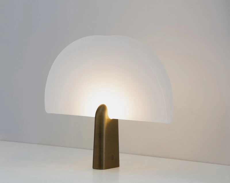 Klongin Pavo-pöytävalaisin yhdistelee tunnelmallisella tavalla pehmeää eleganssia ja pelkistettyjä geometrisia muotoja. Valaisimen pronssattu alumiinijalka kannattelee ohuesta, kierrätetystä akryylilevystä valmistettua varjostinta, joka on taitettu puoliympyrän muotoon. Valo kuultaa maidonvalkoisen varjostimen läpi pehmeänä ja kutsuvana, ja veistoksellinen valaisin toimii upeana sisustuselementtinä myös valon ollessa sammutettuna. Pavo-pöytävalaisimen on suunnitellut designduo Broberg & Ridderstråle.