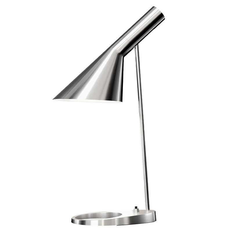 Louis Poulsenin AJ-pöytävalaisin sopii erinomaisesti sekä työ- että yöpöydälle ja se kääntää katseet myös olohuoneen yksityiskohtana. Louis Poulsenin AJ-valaisimien ilmeikäs ja ikoninen muoto syntyi vuonna 1957, kun tanskalaisarkkitehti Arne Jacobsen suunnitteli Kööpenhaminan SAS Royal -hotellin sisustuksineen ja kalusteineen. AJ-valaisimen kartionmuotoista metallivarjostinta on mahdollista liikuttaa pystysuunnassa, ja sen himmeän valkoiseksi maalattu sisäpinta heijastaa valoa pehmeästi ja häikäisemättä. Sittemmin AJ-sarjan valaisimista on tullut tanskalaisia designikoneja ja Jacobsenin kenties rakastetuimpia tuotteita.