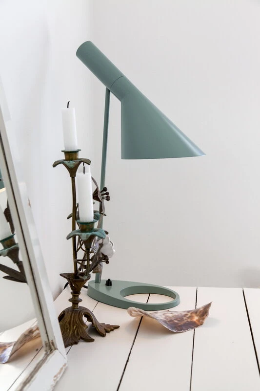 Louis Poulsenin AJ-pöytävalaisin sopii erinomaisesti sekä työ- että yöpöydälle ja kääntää katseet myös olohuoneen sisustuksen yksityiskohtana. Louis Poulsenin AJ-valaisimien ilmeikäs ja ikoninen muoto syntyi vuonna 1957, kun tanskalaisarkkitehti Arne Jacobsen suunnitteli Kööpenhaminan SAS Royal -hotellin sisustuksineen ja kalusteineen. AJ-valaisimen kartionmuotoista metallivarjostinta on mahdollista liikuttaa pystysuunnassa, ja sen himmeän valkoiseksi maalattu sisäpinta heijastaa valoa pehmeästi ja häikäisemättä. Sittemmin AJ-sarjan valaisimista on tullut tanskalaisia designikoneja ja Jacobsenin kenties rakastetuimpia tuotteita.