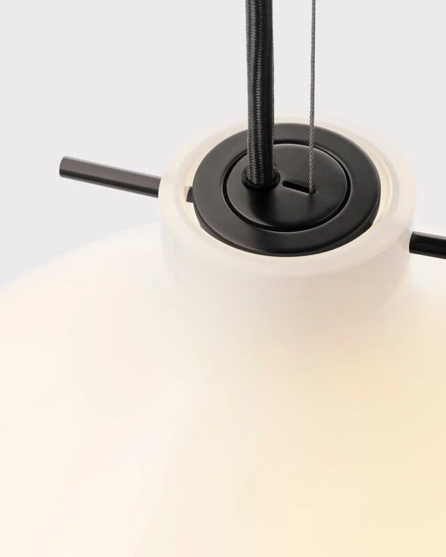 “Halusimme kiinnittää huomion valaisimen pienimpään mutta silti merkittävään yksityiskohtaan – ohueen metallitappiin, joka lävistää valaisimen lasikuvun. Kyseessä on olennainen elementti valaisimen designissa, sillä se samaan aikaan kannattelee kupua ja tuo kokonaisuuteen seesteisyyttä ja tasapainoisuutta”, suunnittelijat ovat kertoneet.