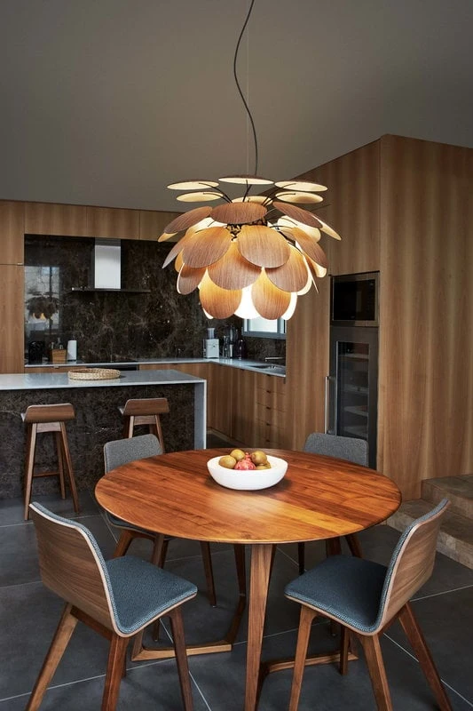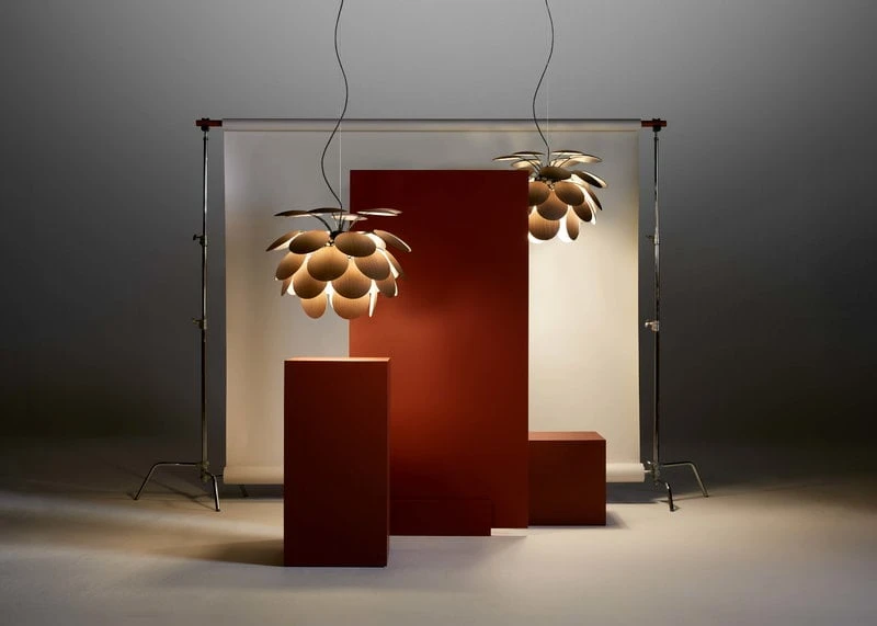 Marsetin Discocó 68 -riippuvalaisin vangitsee huomion valon, varjon ja muotojen leikillä. Christophe Mathieun vuonna 2009 suunnittelema Discocó-kokoelma täydentyi vuonna 2018 tammisella versiolla. Valaisin rakentuu mustan kromirungon varaan asetetuista pyöreistä tammilevyistä, jotka heijastelevat lämmintä valoa ja tekevät valaisimesta häikäisemättömän. Veistoksellinen Discocó sopii oivallisesti esimerkiksi ruokailuryhmän ylle tai avaran olohuoneen valaisijaksi, ja näyttävän luonteensa ansiosta se on vangitseva taideteos sammutettunakin.