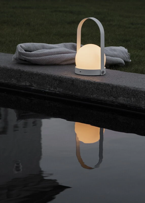 MENUn Carrie-pöytävalaisin tuo kotiin lämpöistä, kotoisaa tunnelmaa – tai ”hyggeä”, kuten Tanskassa sanotaan! Norm Architectsin suunnittelema lyhtymäinen valaisin rakentuu pyöreästä muovialustasta, valkoisesta opaalilasikuvusta ja kauniista kantokahvasta, jonka avulla Carrieta on helppo kuljettaa mukanaan. Himmennettävä valaisin on johdoton ja ladattava, joten se sopii yhtä lailla yöpöydälle tai ikkunalaudalle kuin moderniksi lyhdyksi mökille, piknikille tai iltakävelylle. IP44-luokituksen ansiosta Carrie-lyhtyä voi käyttää myös ulkona parvekkeella, terassilla tai puutarhassa.