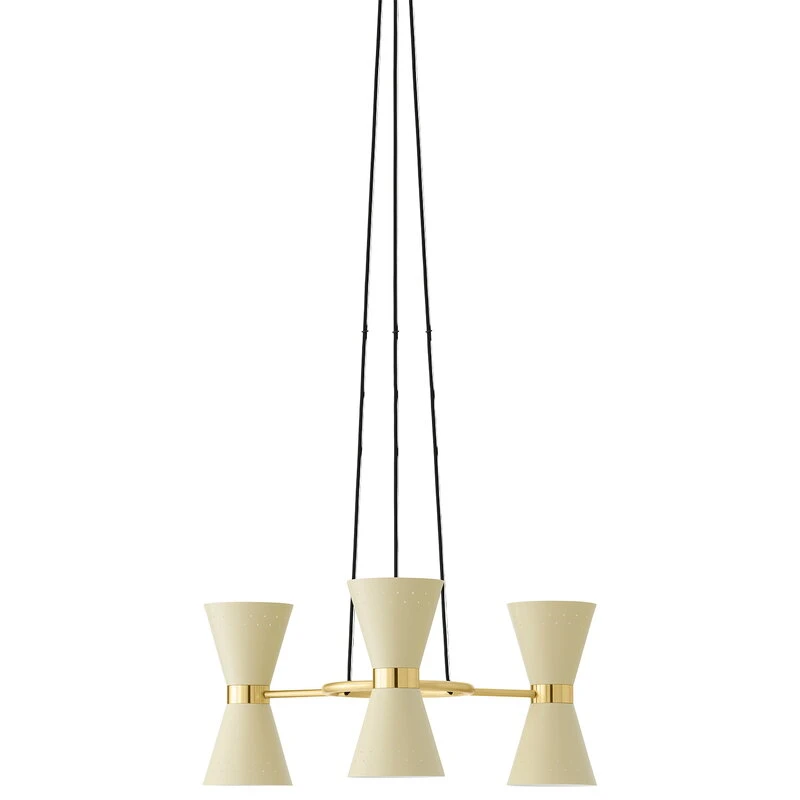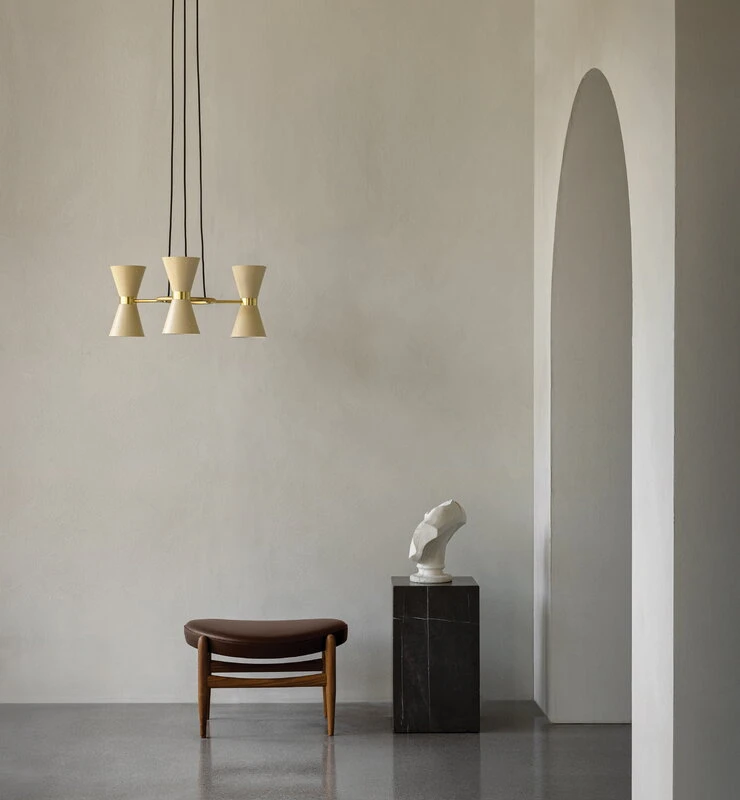 Menun Collector 3 -kattokruunu tuo pehmeää valoa ja intiimiä tunnelmaa niin kotiin kuin julkisiin tiloihinkin. Ajattoman moderni riippuvalaisin koostuu yhteensä kuudesta kartiomaisesta alumiinivarjostimesta, jotka säteilevät valoa sekä ylös että alas, kuten myös varjostimen alaosassa olevien pienten reikien läpi kauniisti siivilöiden. Ylelliset messinkiyksityiskohdat kruunaavat Collector-valaisimen herkän ilmeen ja tuovat ajan myötä patinoituessaan vain lisää eleganssia tyylikkään kattokruunun ulkoasuun.