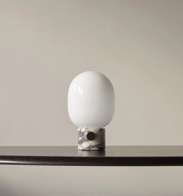 Menun hauska ja elegantti JWDA-pöytävalaisin rakentuu marmorijalustasta, pyöreästä opaalilasikuvusta ja nupista, joka toimii sekä katkaisijana että himmentimenä. Suunnittelija Jonas Wagell sai innoituksen moderniin valaisinsarjaan perinteisten öljylamppujen tunnelmasta. JWDA suodattaa tilaan pehmeää valoa ja sopii koristamaan etenkin sohva- tai yöpöytää viehättävän herkällä ulkonäöllään.