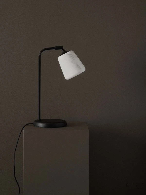 New Worksin Material-pöytävalaisin leikittelee nimensä mukaisesti eri materiaaleilla. Material-valaisinperheessä muoto on kaikilla valaisimilla sama, mutta materiaalit vaihtelevat. Sarjaan kuuluu niin puusta, metallista, marmorista, keramiikasta kuin betonistakin valmistettuja valaisimia.
