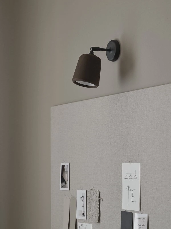 New Worksin Material-seinävalaisin leikittelee nimensä mukaisesti eri materiaaleilla. Material-valaisinperheessä muoto on kaikilla valaisimilla sama, mutta materiaalit vaihtelevat. Sarjaan kuuluu niin puusta, metallista, marmorista, keramiikasta kuin betonistakin valmistettuja valaisimia.