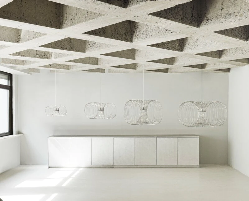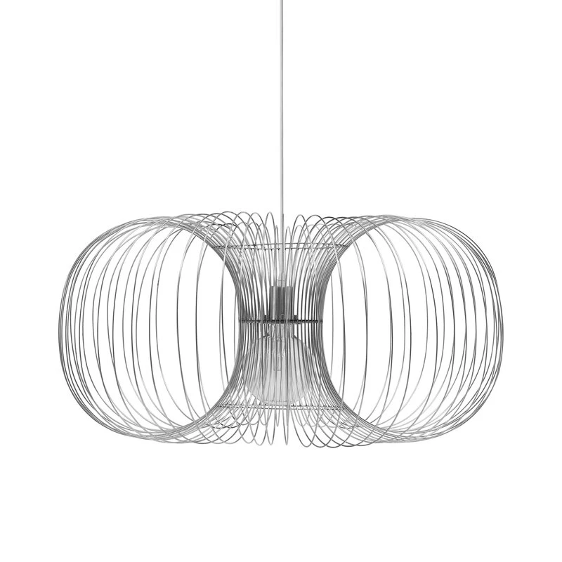 Normann Copenhagenin Coil-riippuvalaisin kääntää katseet äärimmäisen kevyellä mutta sitäkin näyttävämmällä muodollaan. Riippuvalaisimen valonlähdettä ympäröi suurikokoinen, tukevasta metallilangasta muotoiltu vyyhti, joka antaa valaisimelle geometrisen ja veistoksellisen olemuksen. Valon ollessa sammutettuna Coil on kuin ilmassa leijuva taideteos, ja lampun syttyessä valaisimen metallisäikeet saavat ylleen lämpimän, ympäristönsä sävyjä heijastavan hehkun.