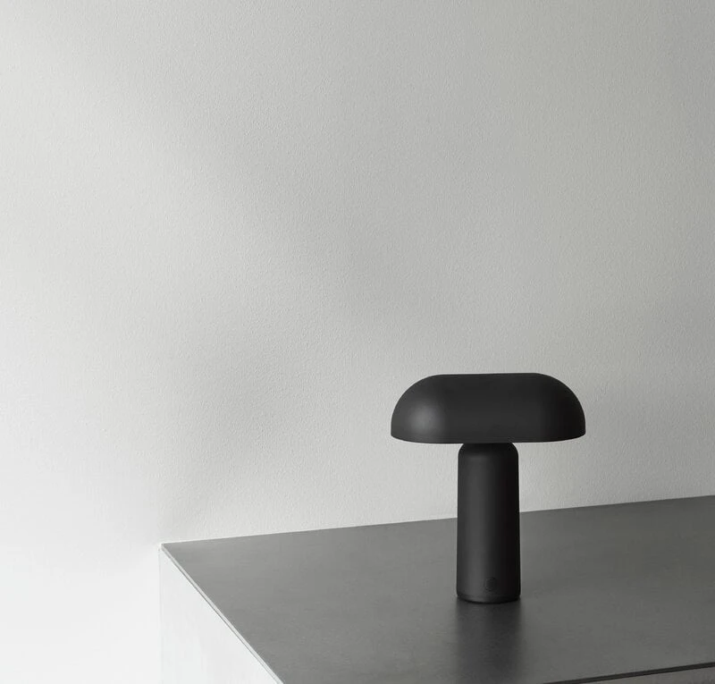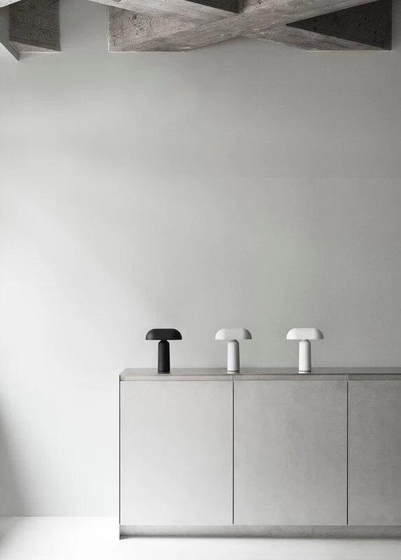 Normann Copenhagenin Porta-pöytävalaisin on kannettava tunnelmanluoja, jota hallitsevat pyöristetyt ja orgaaniset muodot. Simon Legaldin suunnittelema minimalistinen ja ajaton pöytälamppu koostuu ABS-muovista valmistetusta pitkänmallisesta varjostimesta ja lieriönmuotoisesta jalasta. Kolmiportaisen himmentimen sekä johdottomuutensa ansiosta valaisin luo miellyttävän kotoisan hehkun sinne, missä ikinä lisävaloa kaipaatkin: kirjan äärellä, ikkunalaudalla, illallispöydässä tai puutarhassa.