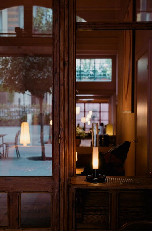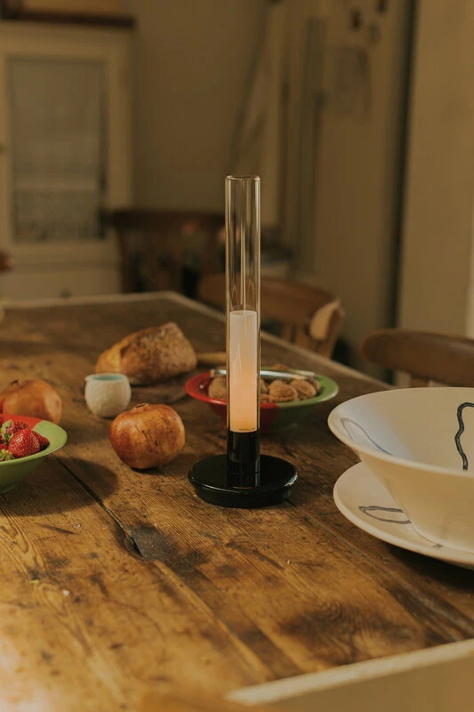 Santa & Colen hurmaava Sylvestrina pöytävalaisin tulkitsee tyylikkäällä tavalla öljylamppujen visuaalista ilmettä. Kestävästä Pyrex-lasista ja metallista valmistettu kekseliäs kannettava valaisin toimii kuitenkin ladattavan akun voimalla. Enric Sòrian ja Jordi Garcésin vuonna 1974 suunnittelema sympaattinen valaisin on helppo kantaa vaikkapa ilahduttavaksi yksityiskohdaksi illallispöytään ja siirtää se sitten parvekkeelle pimeän tullen – Sylvestrinan tunnelmallisesta valosta voi nauttia pienimmällä teholla jopa 14 tuntia ja suurimmallakin peräti seitsemän.