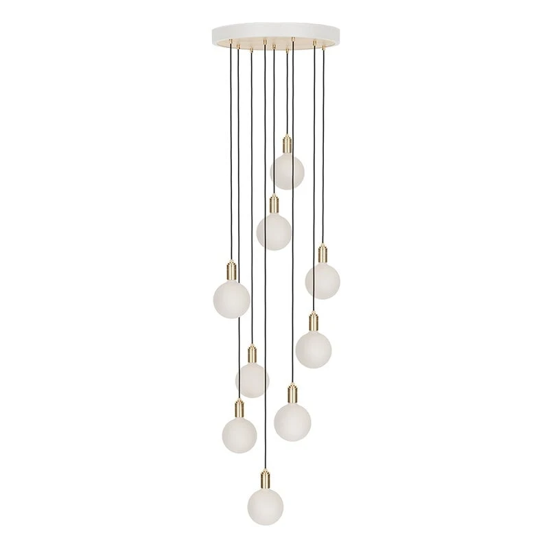 Talan Brass Nine -riippuvalaisin on brittiläisvalmistajan moderni tulkinta entisaikojen loistokkaista kattokruunuista: valaisin koostuu yhdeksästä vierekkäin riippuvasta metallikannasta ja Talan omista Sphere IV -polttimoista, jotka roikkuvat valkoisen ja messingin sävyisestä kattorasiasta.
