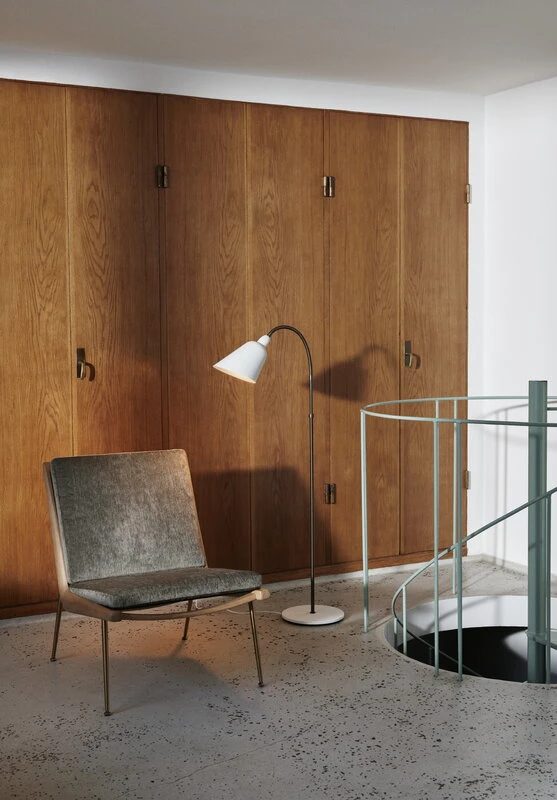 &Traditionin Bellevue AJ7 -lattiavalaisin edustaa Arne Jacobsenin tyylikästä pohjoismaista minimalismia, jossa kohtaavat harkitut muodot ja ajattomat materiaalit. Alun perin vuonna 1929 julkaistu Bellevue oli ensimmäinen Arne Jacobsenin suunnittelema valaisin ja se sai inspiraationsa metalliputkituotannosta ja Bauhausin ajan modernista muotoilusta. Valaisimen tunnusomainen piirre on kaarevan metallivarren päähän sijoitettu, 45 asteen kulmassa leikattu varjostin. &Traditionin uudelleenjulkaisemaan Bellevue-kokoelmaan kuuluvat lattia-, pöytä- sekä seinävalaisin tähän päivään päivitetyissä väreissä.