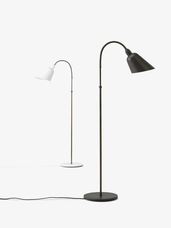 Pronssatulla messingillä viimeistelty Bellevue AJ7 -lattiavalaisin kuuluu &Traditionin 120th Anniversary Edition -kokoelmaan, joka juhlistaa Arne Jacobsenia ja tämän vaikutusta tanskalaiseen designiin.
