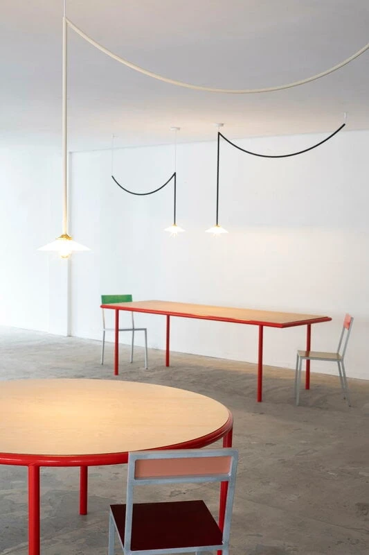 valerie objectsin Ceiling Lamp on muotoilutoimisto Muller Van Severenin moderniksi klassikoksi muodostunut innovatiivinen valaisin, jota hallitsee äärimmilleen pelkistetty mutta leikkisä muotoilu. Fien Mullerin ja Hannes Van Severenin alkujaan omaan kotiinsa suunnittelemasta valaisimesta innoituksen saanut Ceiling Lamp koostuu kattoon kiinnitettävästä metallirungosta ja hyvin klassisesta laakean kartion mallisesta lasivarjostimesta. Valaisimen juju perustuu rungon viivamaiseen muotoon – kuin joku olisi piirtänyt sen väriliidulla ilmaan yhdellä ainoalla viivalla. Valaisimen minimalistisessa, jopa teollisessa muodossa onkin ripaus leikkisyyttä, joka tekee Ceiling Lamp -valaisimesta kiehtovan omaleimaisen ja erottuvan tilassa kuin tilassa. Vuosien saatossa ensimmäisen Hanging Lamp -valaisimen ympärille on muodostunut kokonainen kokoelma valaisimia, joita kaikkia yhdistää sama tunnistettavan pelkistetty muotokieli.