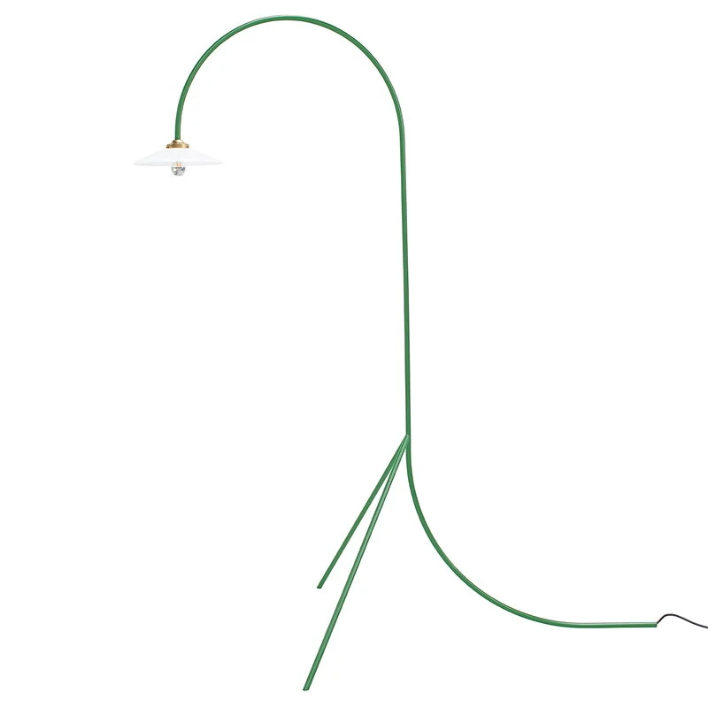 Standing Lamp on muotoilutoimisto Muller Van Severenin valerie objectsille suunnittelema lattiavalaisin, joka kiinnittää katseen pelkistetyllä, mutta samaan aikaan omaleimaisen leikkisällä ilmeellään. Kuin viivapiirros, Standing Lamp -valaisimen runko kaartuilee ylös ja takaisin kohti lattiaa kohdaten lopulta äärimmäisen hillityn, klassisen lasivarjostimen. Kahden metallijalan varassa seisova Standing Lamp -lattiavalaisin soveltuu erinomaisesti esimerkiksi lukuvaloksi nojatuolin viereen niin kotona kuin julkisissa tiloissa kuten kahviloissa tai hotellien auloissa.