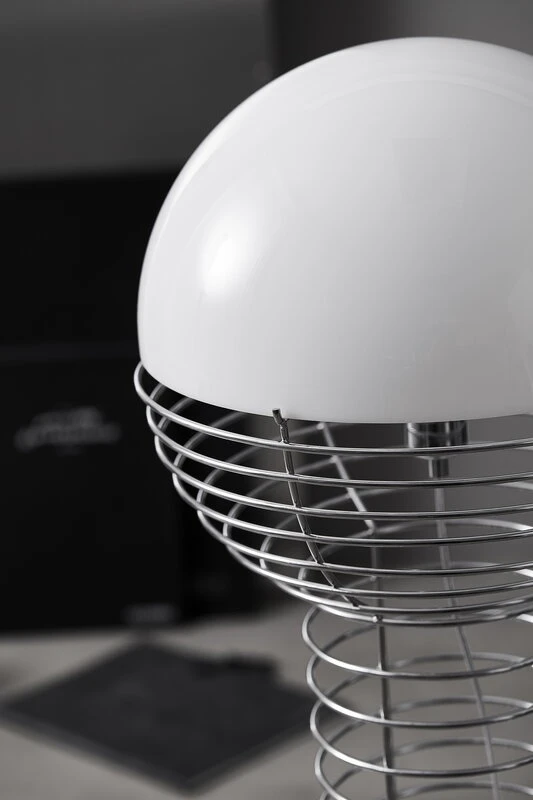 Verpanin Wire-lattiavalaisin on tanskalaisen muotoilijalegenda Verner Pantonin suunnittelema designklassikko vuodelta 1972. Panton valitsi Wire-valaisimen materiaaleiksi kaksi keskenään hyvin erilaista elementtiä: valaisimen jalkana toimii kiiltävästä kromatusta metallista valmistettu, ylöspäin levenevä kehikko, jonka pariksi on liitetty puolipyöreä, valoa pehmeästi läpäisevä muovivarjostin. Itse valonlähde on sijoitettu niin ikään puolipyöreän metallikappaleen sisään, joka ohjaa valon suoraan varjostimeen ja estää samalla häikäisyn. Wire-lattiavalaisimen tunnelmallinen valo ja näyttävä, veistoksellinen design tekevät siitä katseet kääntävän valaisimen esimerkiksi sohvaryhmän kupeessa tai avarassa aulatilassa.